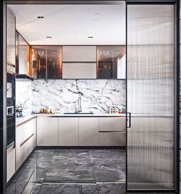 The door material of the Modern Kitchen Cabinet is made from a combination of MDF, particle board, and plywood. This blend of materials ensures durability and longevity, making the cabinet a reliable choice for everyday use.