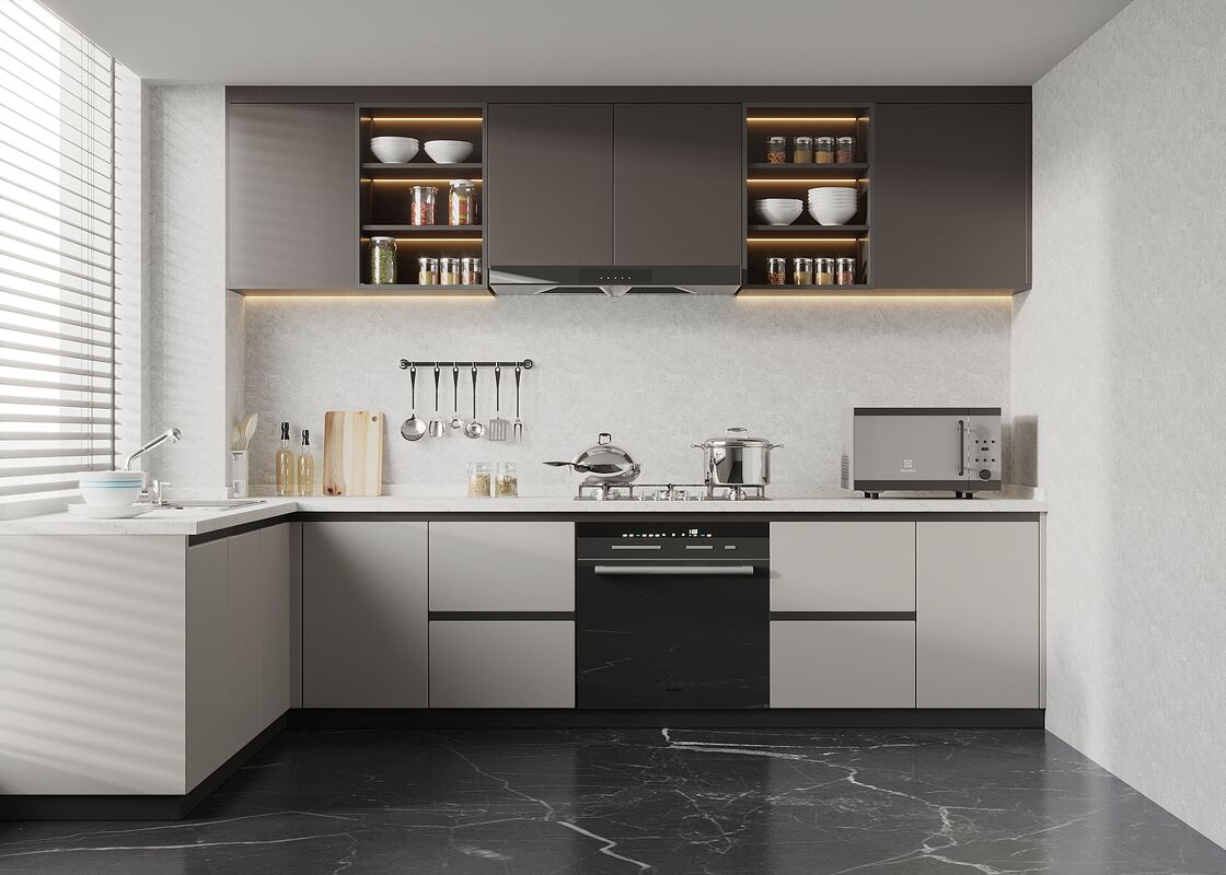 Incorporating modern kitchen appliances seamlessly, the Modern Kitchen Cabinet is designed to accommodate built-in refrigerators, disinfection machines, ovens, and microwave ovens. This integration not only saves valuable countertop space but also creates a sleek, uncluttered look that is highly sought after in contemporary kitchen design. The built-in refrigerator slot is carefully dimensioned to fit most standard models, while the disinfection machine compartment ensures hygiene is maintained with minimal effort.